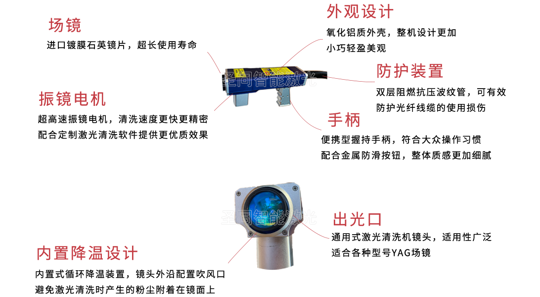 多學(xué)科融合的高學(xué)歷高素質(zhì)人才團隊,研發(fā)了激光清洗專用光源,并針對不同清洗對象進行個性化設(shè)計,且擁有多款完全自主知識產(chǎn)權(quán)的激光清洗裝備關(guān)鍵部件。 其中激光清洗槍頭自主研發(fā),重量不等,8種波形可選,在保障效率和清洗質(zhì)量的同時,兼顧便攜性、靈活性、環(huán)保性,功能強大。